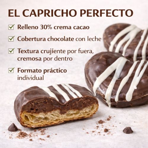 Ideales para disfrutar en cualquier momento del día: desayuno, merienda o como capricho dulce. Su relleno de cacao las convierte en una opción aún más indulgente y sabrosa.
