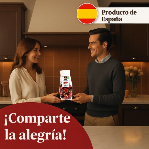 PRESENTACIÓN | El producto se presenta en un lote de 5 bolsas individuales de 180 g, con un peso total de 900 g. Cada estuche contiene guindas al licor envueltas individualmente, conservando toda su frescura, aroma y calidad gourmet. Formato ideal para: ✔ Regalos y detalles premium ✔ Packs familiares o degustación ✔ Cestas navideñas y gourmet ✔ Hostelería, tiendas delicatessen y empresas.