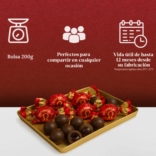 GUINDAS AL LICOR | Las Guindas al Licor LaPasion son un clásico gourmet elaborado con cerezas confitadas, maceradas en auténtico licor marrasquino, y recubiertas con chocolate negro 57% cacao. Un dulce intenso, aromático y equilibrado que combina fruta, licor y chocolate en un solo bocado.