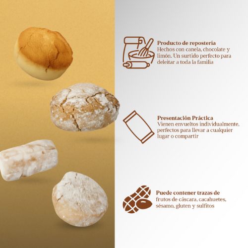 SURTIDO POLVORÓN CLÁSICO | Surtido formado con polvorón con aroma a cacao, limón y especial.