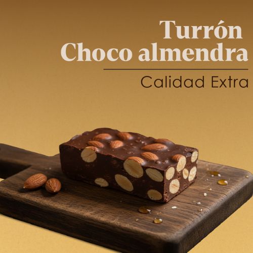 -TURRÓN DE ALMENDRA AL CACAO: Cobertura de cacao y LECHE (70%) [azúcar, grasa vegetal parcialmente hidrogenado (palmiste), suero de LECHE en polvo, cacao natural en polvo, LECHE entera en polvo, emulgente (E322, E-492) y aromas] y ALMENDRAS (30%). Cacao 4% mínimo en la cobertura. Puede contener trazas de gluten, huevo, frutos de cáscara, cacahuete, sésamo y sulfitos.